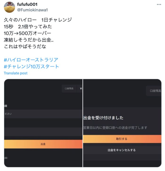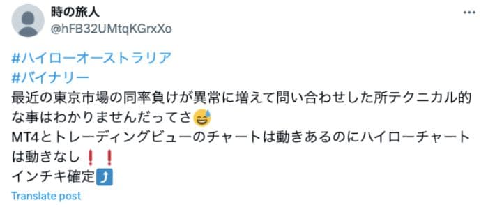 SNSで「ハイローオーストラリア 出金拒否」と検索すると、多くの口コミを確認可能です。