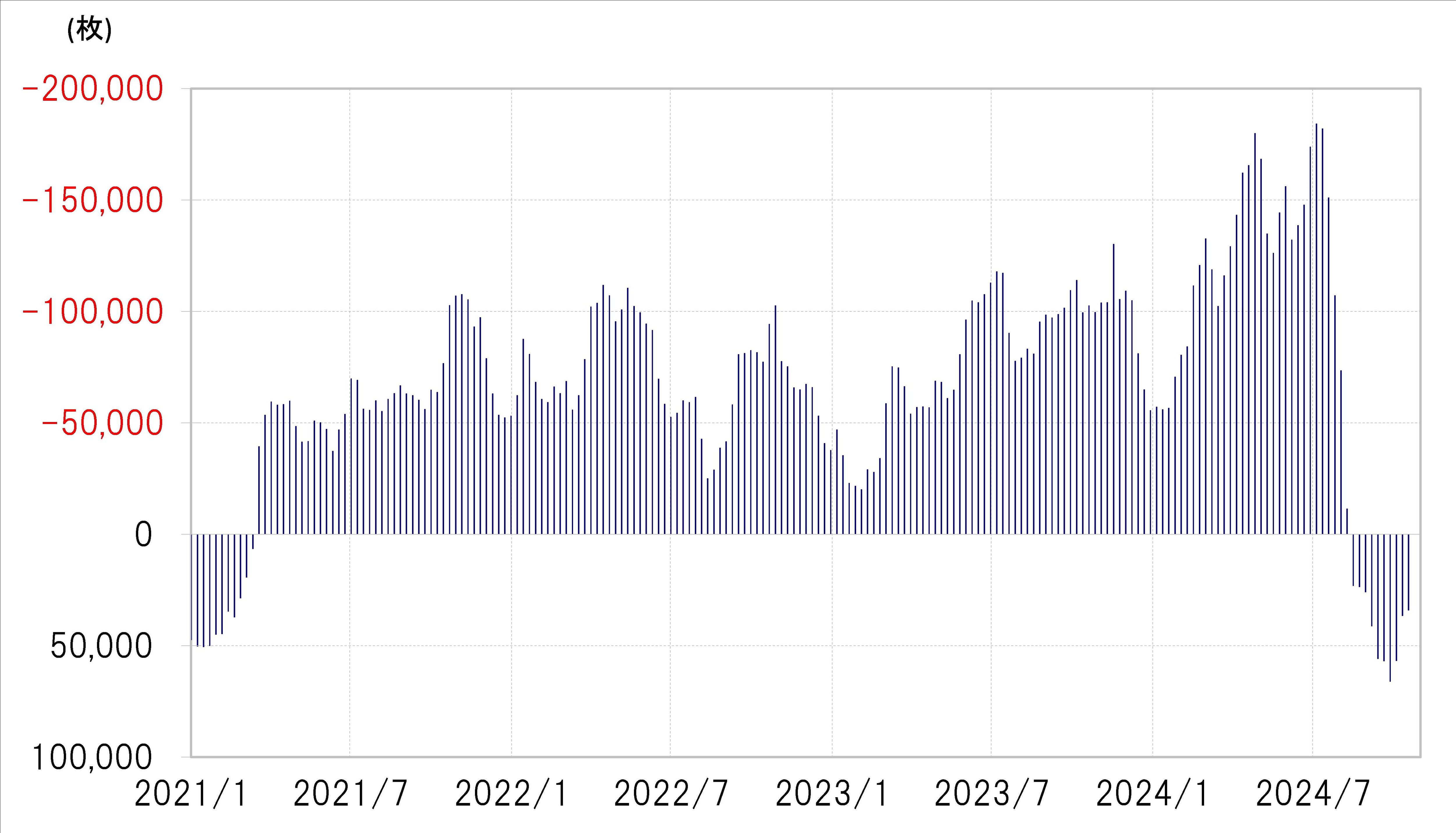 7月下旬に米ドル/円が120日MAを割り込んだ局面では、ヘッジファンドの取引を反映しているCFTC(米商品先物取引委員会)統計による投機筋のポジションは、当時の大幅な売り越し(米ドル買い越し)は急縮小に向かいました。これは、120日MAがヘッジファンドの売買転換点の目安になっている可能性を示すものでしょう。