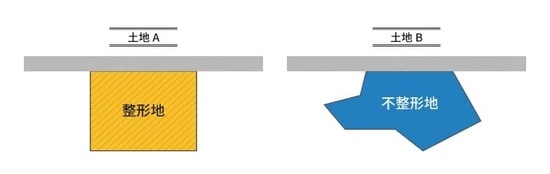 土地は必ずしも図表1の土地Aのような正方形や長方形の整形地であるとは限りません。なかには、図表1の土地Bのようにゆがんだ形の土地もあります。
