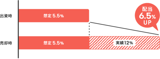 想定利回りは、売却想定価格等から逆算して算出しています。売却価格は、その時の市況感などに左右され、想定より高く売れることがあります(もちろん、物件の目利き・バリューアップを達成する推進力、そして高く売却する交渉力が大事です)。その時に、COZUCHI独自の配当ポリシーによる、配当利回りの上振れが発生します(皆さんとフェアでいたいから利益もシェアしたい、という想いからです)。