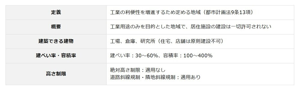 不動産投資としては、特殊な産業用不動産や大規模な物流施設などが主な対象となります。周辺環境への配慮から、臨海部や工業団地内に指定されることが多く、長期的な産業用途での活用を前提とした投資戦略が求められます。