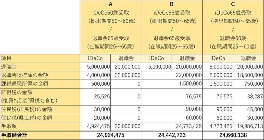 改正前と後で受取金額は約40万円減少することになります。iDeCoを先に受け取るパターンAのメリットが薄まり、iDeCoを後に受け取るパターンのほうが手取額が大きくなる可能性があります。