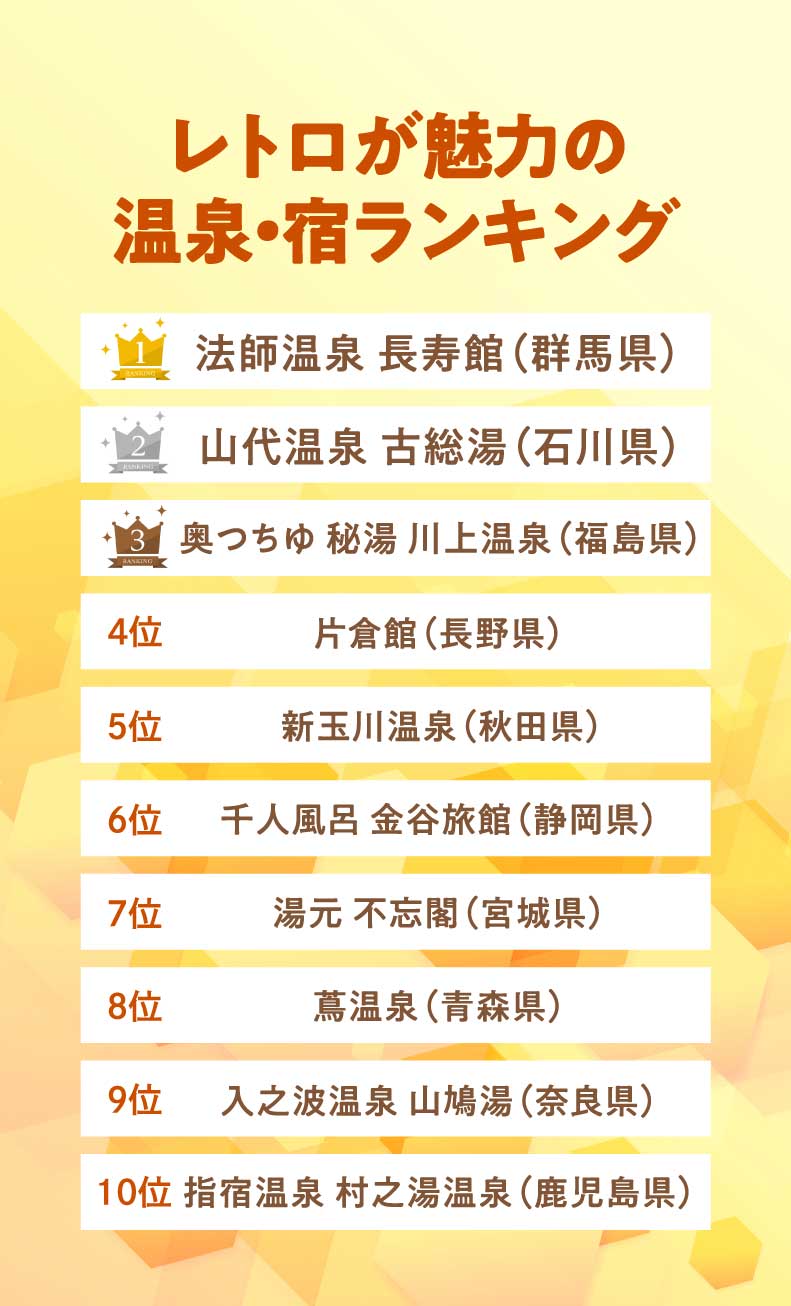 寒さが身に染みるこの時季、癒しを求めて訪れたくなるのが「温泉」。今回は「じゃらん」が行った「レトロ温泉」に関する調査をもとに、「レトロ温泉ランキング」をご紹介します。