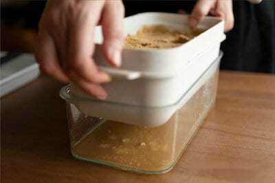 おいしいぬか床を保つため、特に注意したいのが水分調節です。ぬか床の状態を見ながら水を抜いたり、米ぬかや塩を足したりして調整します。