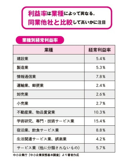 図表3は中小企業庁の調査データをもとに、業種別の経常利益率をまとめたもの。業種によって利益率に大きな差があることがわかります。