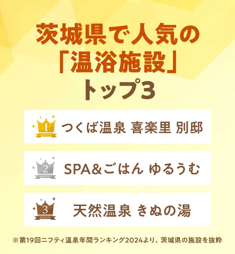 【早見表】茨城県で人気の「温浴施設」トップ3