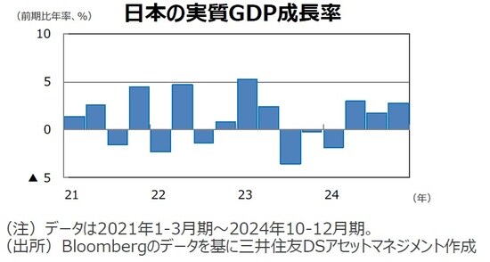 ●中国では、24年の成長率の速報値が5.0%であったことを受け、25年4.1%、26年4.0%の成長を予想しています。24年10-12月期の成長は想定以上でした。トランプ大統領が関税を引き上げる前に、企業が輸出を急いだことが要因と見られます。25年には、反動減が懸念されます。