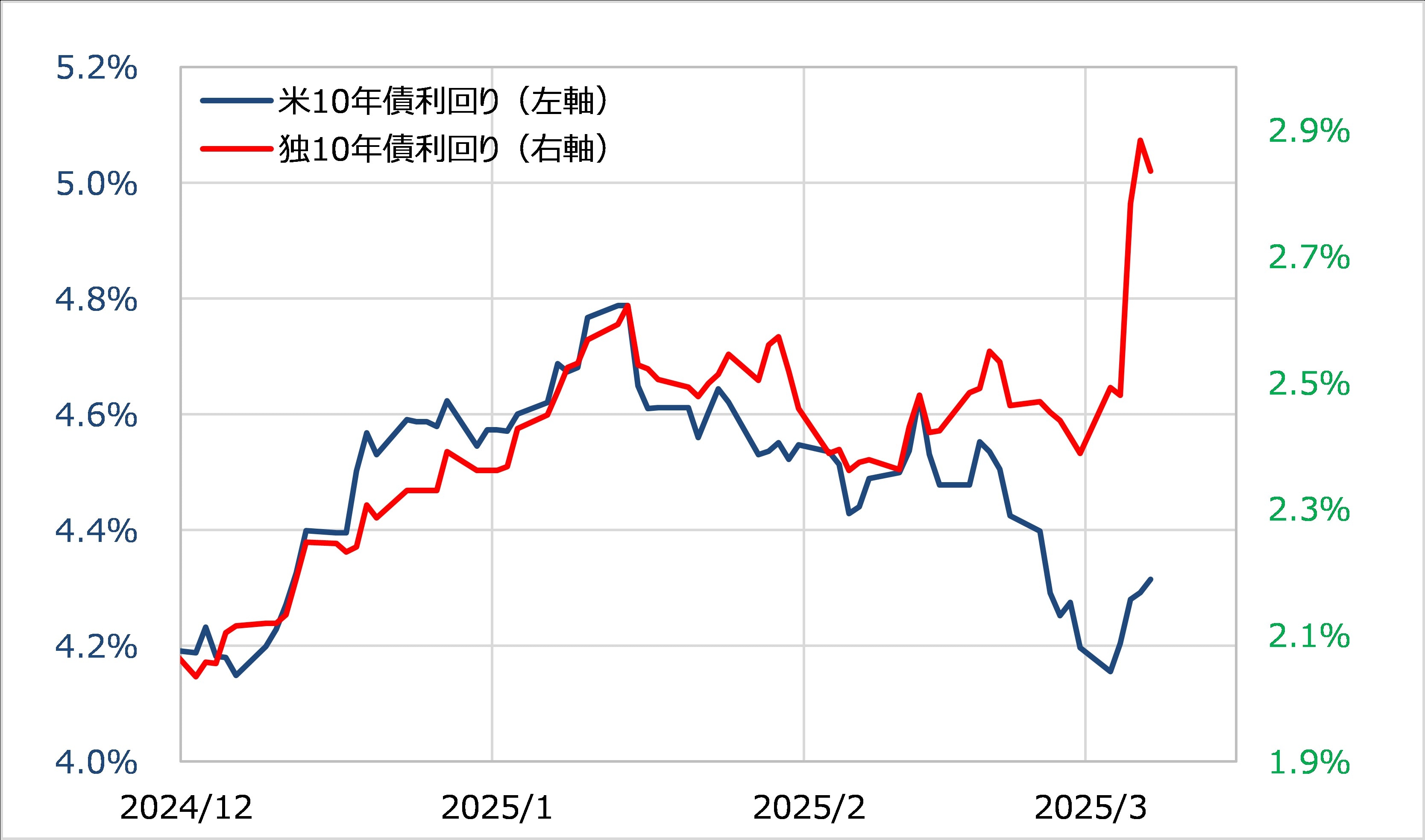 この背景には、トランプ大統領の「米国第一主義」においては、米国以外の国は経済・安全保障など自己責任が強くなり、それが財政拡張につながるということがあるのではないでしょうか。そうであれば、日独などの金利上昇の流れは基本的に続くと考えられ、日米金利差は縮小しにくいと思います。
