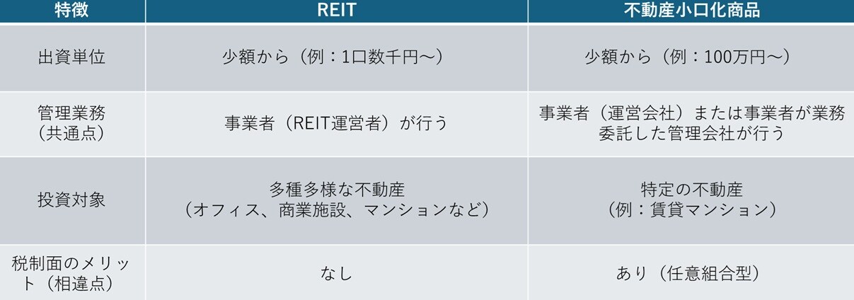 一般的な区分所有や不動産投資信託(REIT)との違い