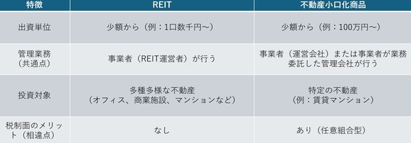 「任意組合型」と呼ばれるタイプの不動産小口化商品は相続税負担を軽減することが可能ですが、REITではそのようなメリットが得られません【図表1】。