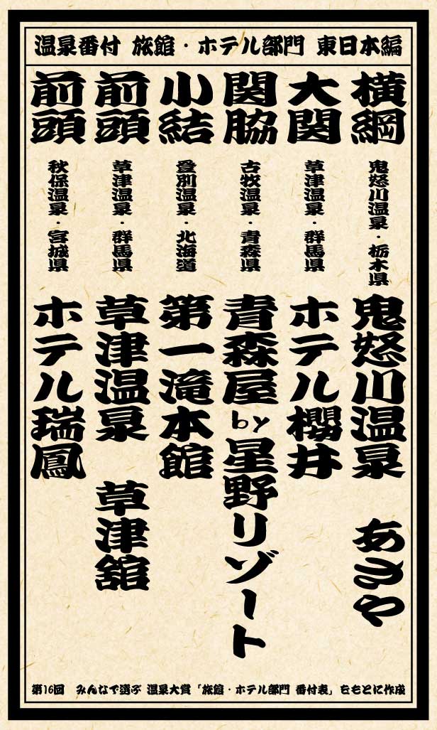 【早見表】〈東日本部門〉人気の「旅館・ホテル」トップ3