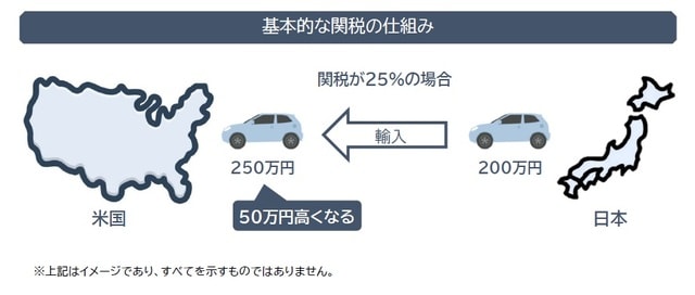 関税の主な目的は「国内の産業の保護」です。関税を課すことで輸入品のコストが増加し、競争力が低下するため、国内産業を保護する機能があります。現在、米国が日本などの国から輸入する乗用車に課す関税は、おおむね2.5%ですが、トランプ大統領はそれを25%に引き上げることを言及しています。
