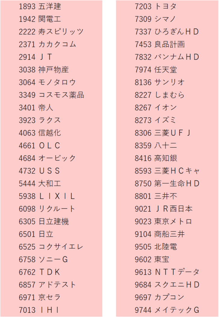 3月の銘柄入れ替えでリターンに貢献してくれた東京海上ホールディングスと丸井グループも除外する。ワンポイント・リリーフとしての役割だ。今後もそのような使い方をするかもしれない。除外銘柄を整理すると以下の10銘柄である。