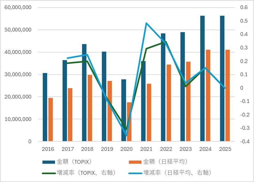 上場企業の業績が直近で減益になったのはコロナ禍が直撃した2020年度であった。その時は上場企業(TOPIXベース)の当期純利益は31%の減益となったが、日経平均採用225社ベースでは36%の減益であった。