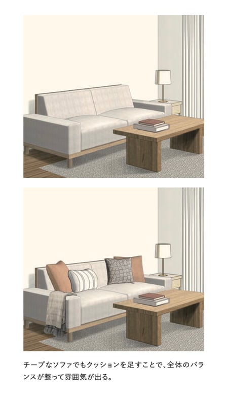 クッションもそれと同じで、クッションの色や素材、サイズなどを変えて組み合わせることで全体のバランスが整い、すてきな光景をつくることができます。
