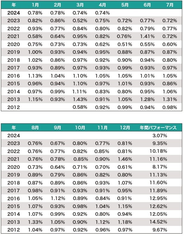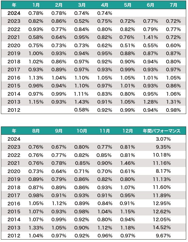 とはいえ、この低い流動性のリスクを取ることで、通常市場で取引される社債よりも高い利回りを得ることが可能です。加えて、市場価格では評価されないため、毎月安定したプラスのリターンを得ることができます。