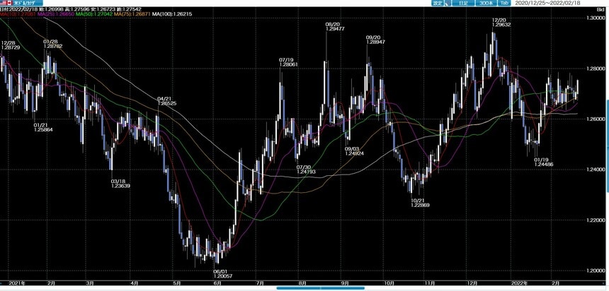 その後、米国のインフレ懸念や金融政策の転換観測で米ドルが買い戻され、年末には1.27台付近で推移。