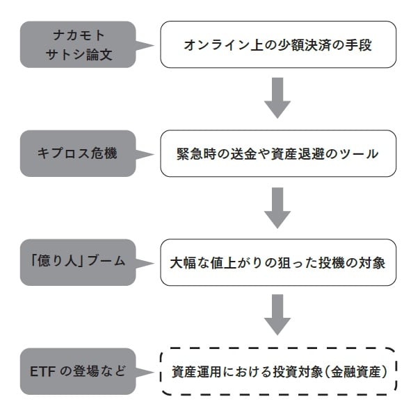 ビットコインの取引価格はこれまで、アップダウンを繰り返しながら、基本的には上昇トレンドを描いてきました。しかし、より重要なことはビットコインをはじめ暗号資産の扱いや性質が大きく変わってきたことです。
