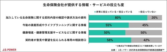 また、生命保険会社から提供する情報に加えて、「契約者が意見や要望を伝えられる専用の相談窓口」※2といったサービスの役立ち度についても、顧客の4割以上が「役立っていない」と回答している。