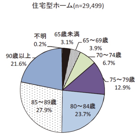 また、住宅型有料老人ホームの入居者の平均年齢は83.3歳です。年齢別の分布は図表のとおりで、80歳以上の入居者が7割以上を占めていることがわかります※。