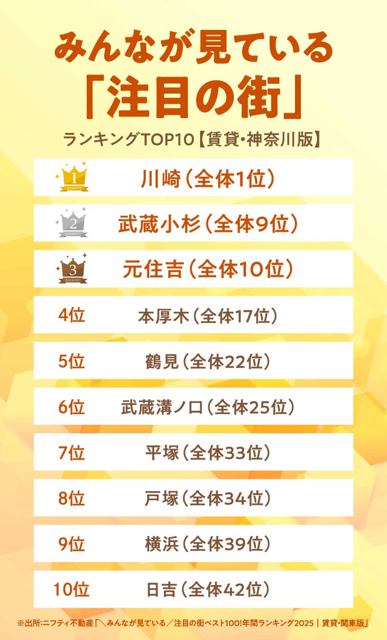 武蔵小杉に元住吉…“東急東横線ブランド”は健在も、横浜は9位。神奈川県内で「検索・閲覧が多かった街」ランキング