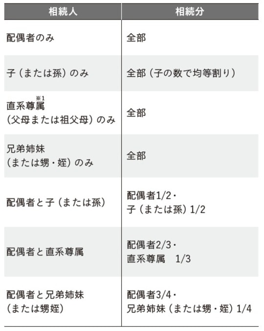 A. 遺言がない場合は、民法で定められた相続の割合(法定相続分)により配分されることになります。法定相続分は[図表2]のように定められています。