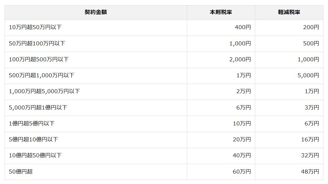 不動産の売買契約書には、印紙税として収入印紙を貼付する必要があります。印紙税の額は、契約書に記載された売買価格に応じて下記のように変わります。2027年3月31日までの軽減税率が適用されています。