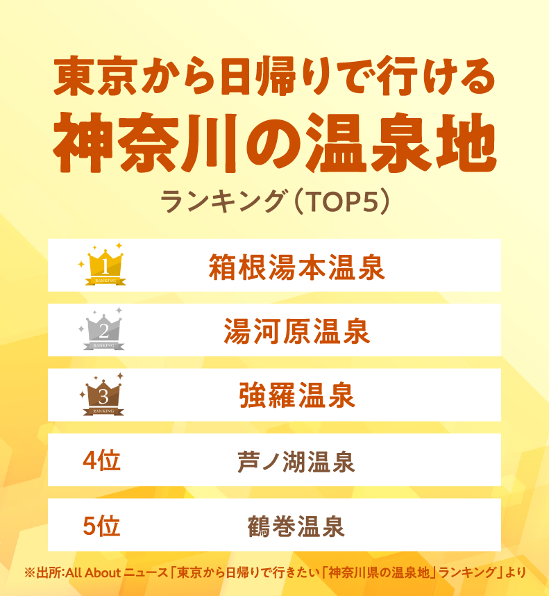 【早見表】東京から日帰りで行きたい「神奈川の温泉」ランキング