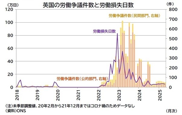 処遇改善を求めたストライキは、4月は件数ベースで51件(3月55件)、労働損失日数で4.7万日(3月5.5万日)となっており、低水準での推移が続いている(図表6)。