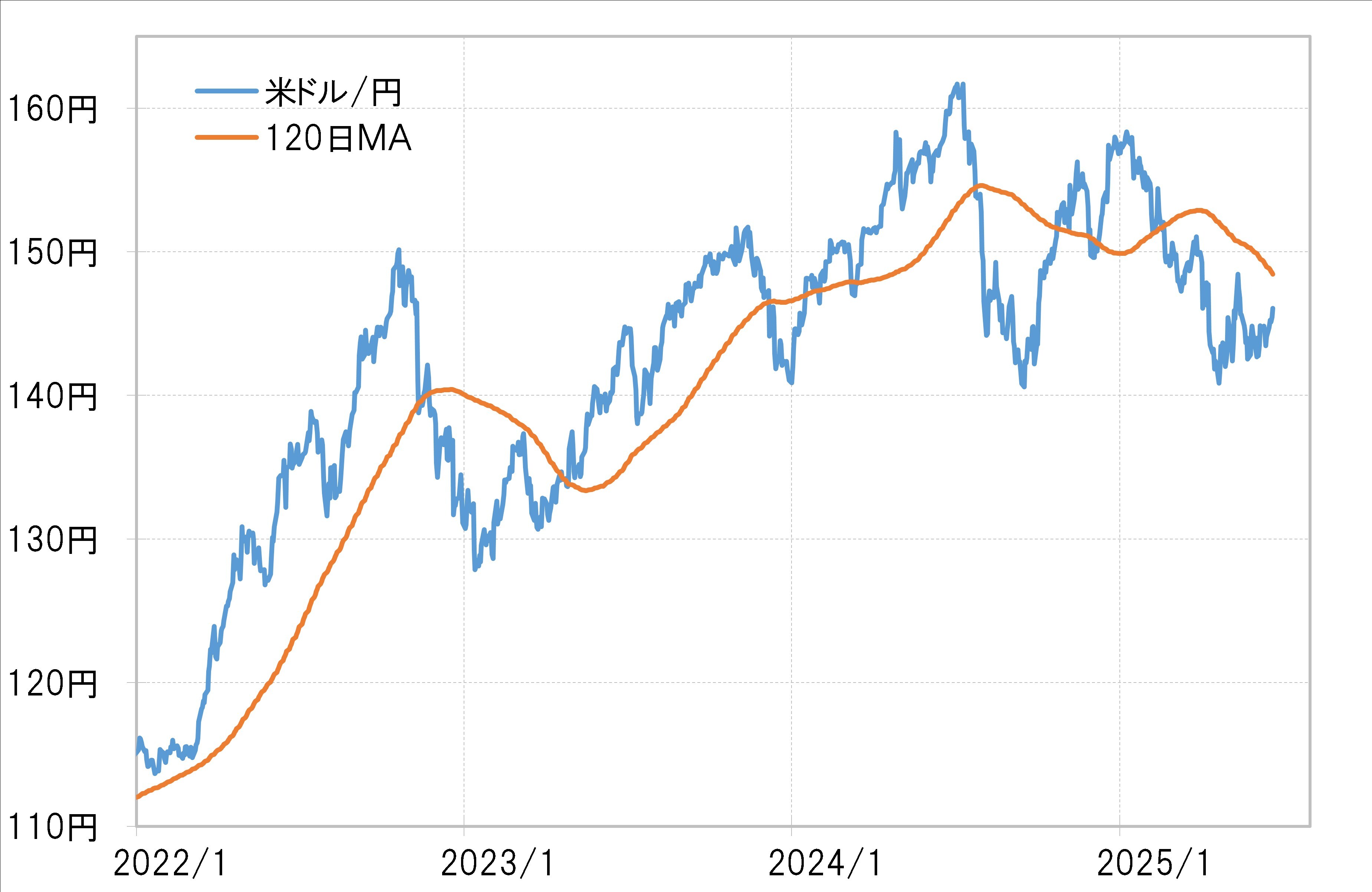 たとえば、損益分岐点の目安である120日MA(移動平均線)は足下で148円台まで下落してきたので、これを超えて米ドル高・円安になる可能性が出てきた場合、円買いポジションの損失拡大を回避するために、ポジションを手仕舞う(米ドル買い・円売り)動きが拡大する可能性があります(図表6参照)。