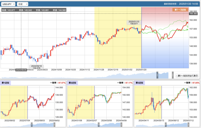 過去のチャートと現在の動きを分析し、将来の動向を予測。