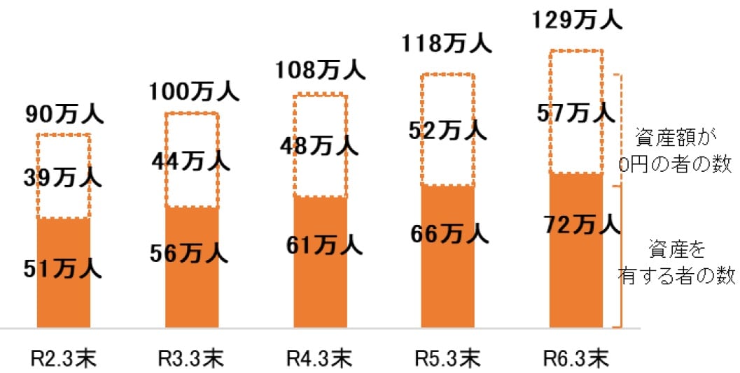 2024年3月末のデータでは、自動移管された人が129万人で、そのうち57万人が資産0円になってしまっています。非常にもったいないことです。心当たりがある人は、自動移管者専用コールセンターに問い合わせ、iDeCoへ移管するなどの手続きをしてください。企業型DC制度がスタートしたのが2001年なので、20代や30代の人で若くして転職した人などが該当するケースが多いです。