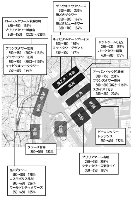 「豊洲でこの価格帯のタワーマンションを探すのは難しく、お隣の東雲にはまだまだある」といったイメージです。