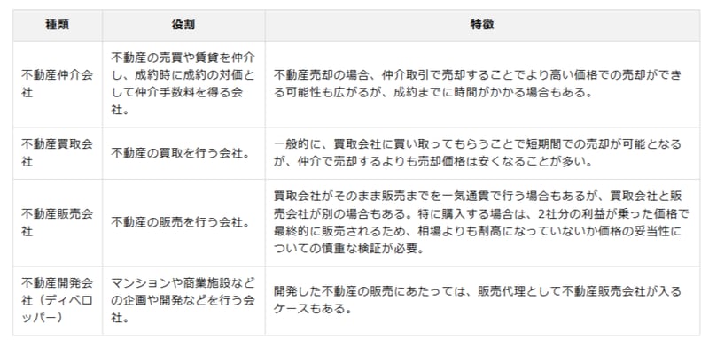 このように、不動産会社の種類によって、得意とすることが異なるため、不動産の売買価格や成立までのスピードに差が出ます。それぞれの特徴を理解し、自分の目的や状況に最適な会社を選ぶことが大切です。