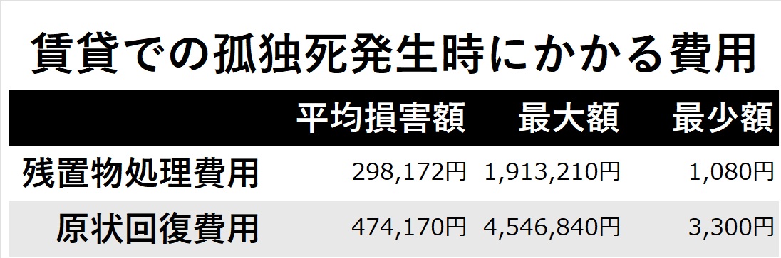 賃貸物件のオーナーは、部屋の特殊清掃や原状回復の費用、また故人に身寄りがなければ残された家財の処分費用などの負担も発生します。加えて事故後の空室(事故物件)の家賃の値下げも打撃でしょう。