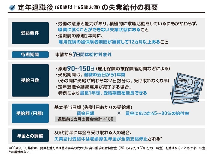 定年退職時点で会社を辞め、心機一転、他の会社などへ再就職しようと求職活動をする場合は、雇用保険から「失業給付(基本手当)」を受け取れます。失業給付は、失業した人が再就職するまでの生活を手助けするための制度です。