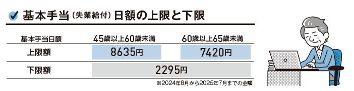 失業給付の基本手当日額は、賃金日額(退職前6ヵ月の賃金合計÷180)に賃金に応じた給付率を掛けて算出します。基本手当日額の上限額は、60歳以上65歳未満の場合、7420円に設定されています。
