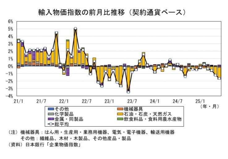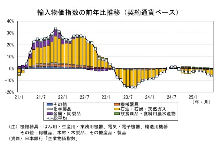 契約通貨ベースの輸入物価は前年比▲6.1%