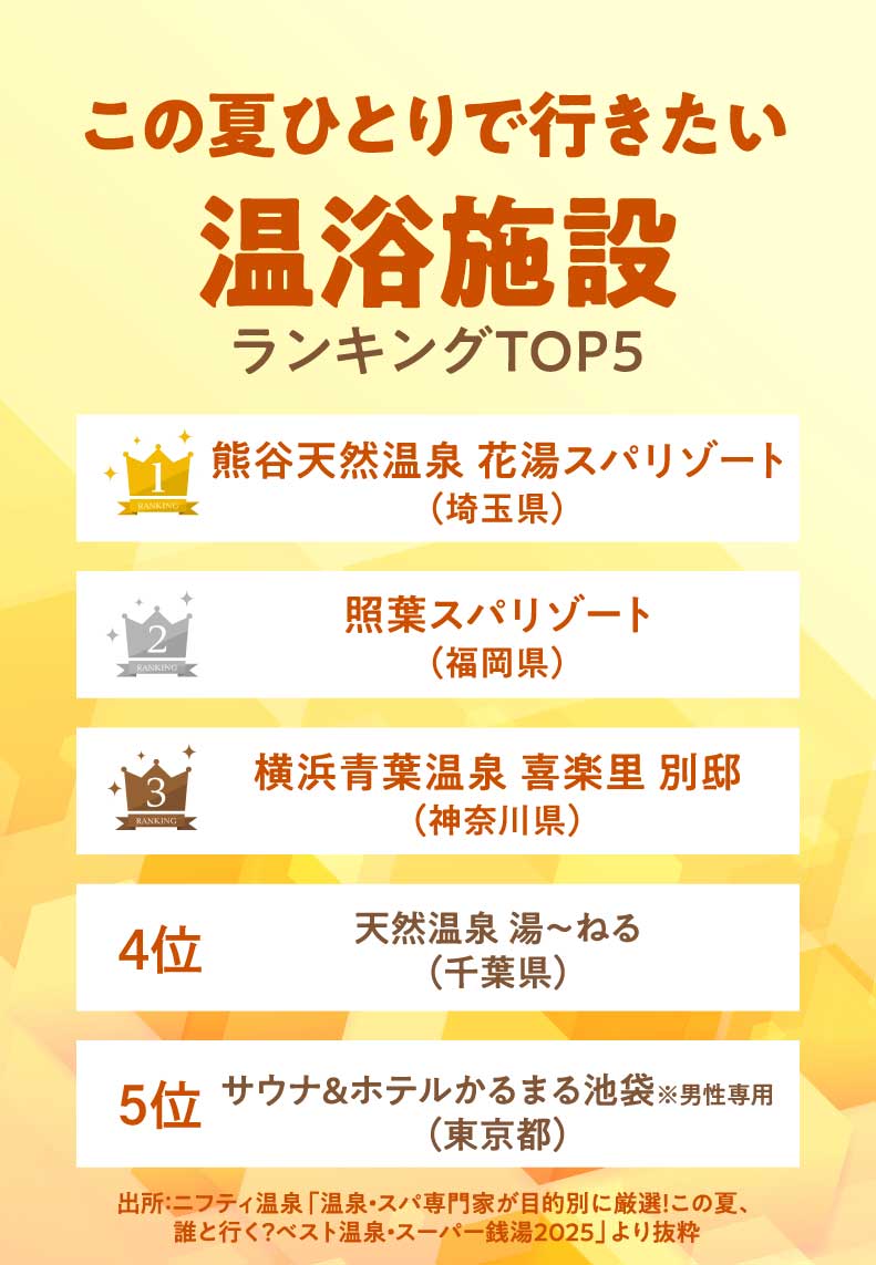 【早見表】この夏訪れたい「ソロ活にぴったりな温浴施設」ランキング