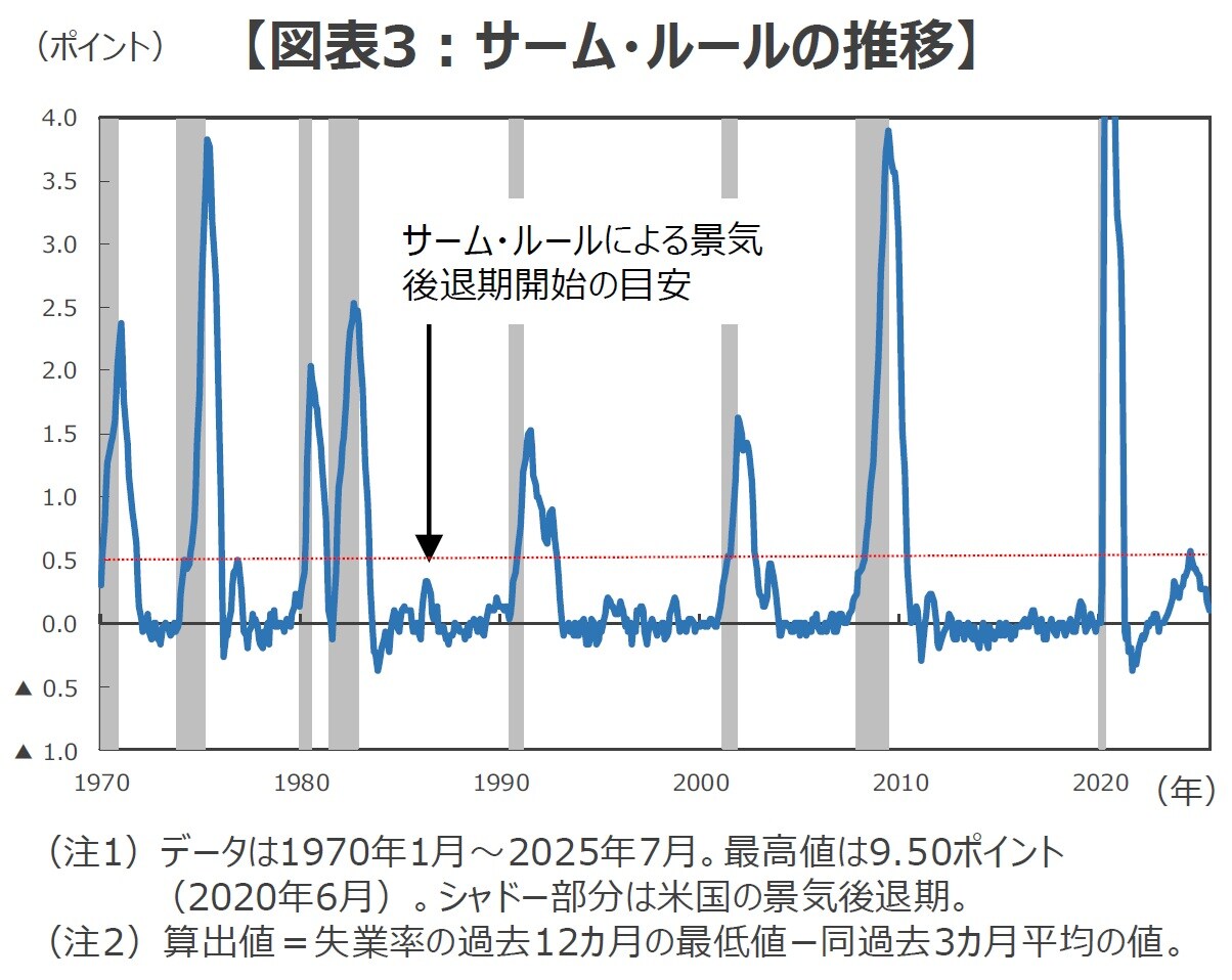 なお、昨年の市場では景気後退シグナルとして、失業率をもとに算出した「サーム・ルール」に注目が集まっていました。0.5ポイントを超えると景気後退に至る可能性が高いとされていますが、7月の結果を当てはめると0.1ポイントとなり、基準値を大きく下回っています。