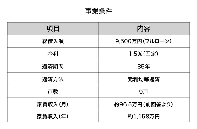 賃貸事業をするにつき、アパートメーカーに参考プランを作成してもらいました。最寄駅から徒歩5分の立地の良さがあり、賃貸事業に適しているといえます。参考プランは、木造3階建て9戸、事業費9,500万円とします。