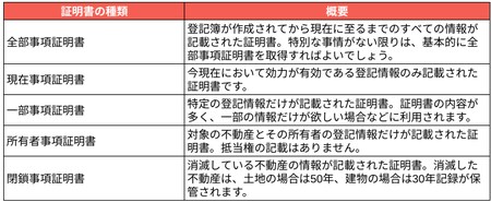 登記事項証明書は記載される内容によって以下の5種類に分けられます。それぞれの違いを知り、必要な書類を入手しましょう。