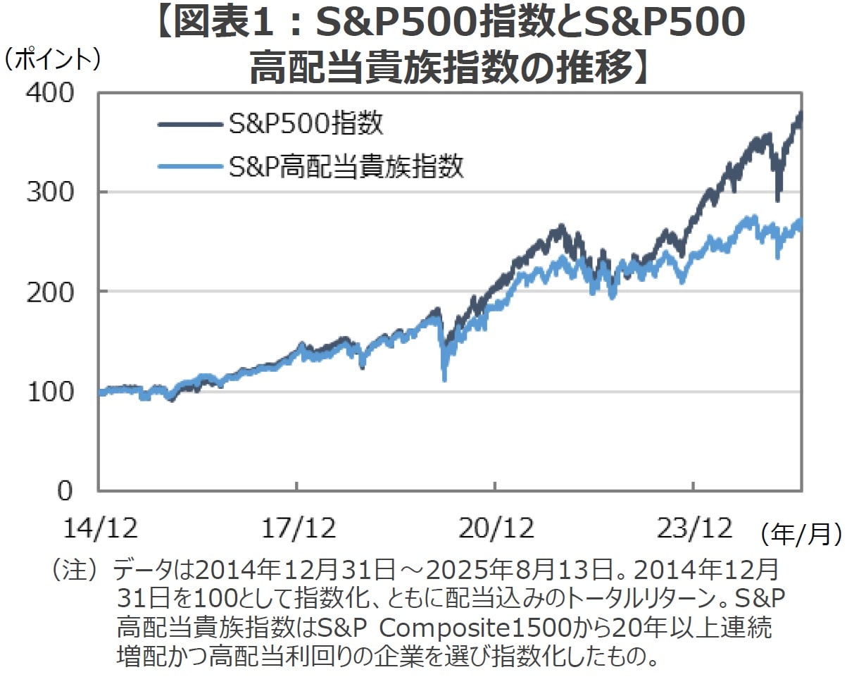 例えば、米国の大手ハイテク企業などは配当よりも将来に向けた投資を優先する傾向が強いため、一般に配当利回りは低くなりがちです。一方、業績が伸び悩み将来にむけた有望な成長機会を見いだせない企業は、本業の儲けの多くを配当として払い出すため配当利回りは高くなりがちです。こうした2つの企業を比べた場合、長期的にどちらが投資対象として魅力的かは、配当利回りだけでは決まらないのは言うまでもないでしょう(図表1)。