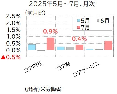 一方、7月のコアPPIは前月比+0.9%と市場予想(同+0.2%)を大幅に上回りました(図表3)。
