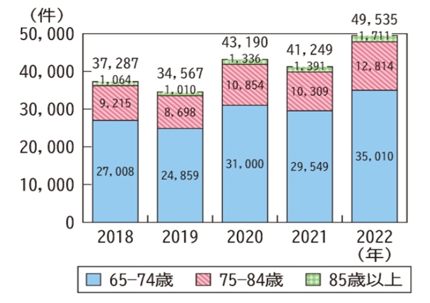 近年、高齢者を中心に通信販売に関するトラブルは増加傾向にあります。消費者庁が公表した資料によれば、65~74歳の消費生活相談のうち通信販売(インターネット通販・その他の通信販売)が占める割合は、2020年の33.4%から2022年には38.3%にまで増加しています。