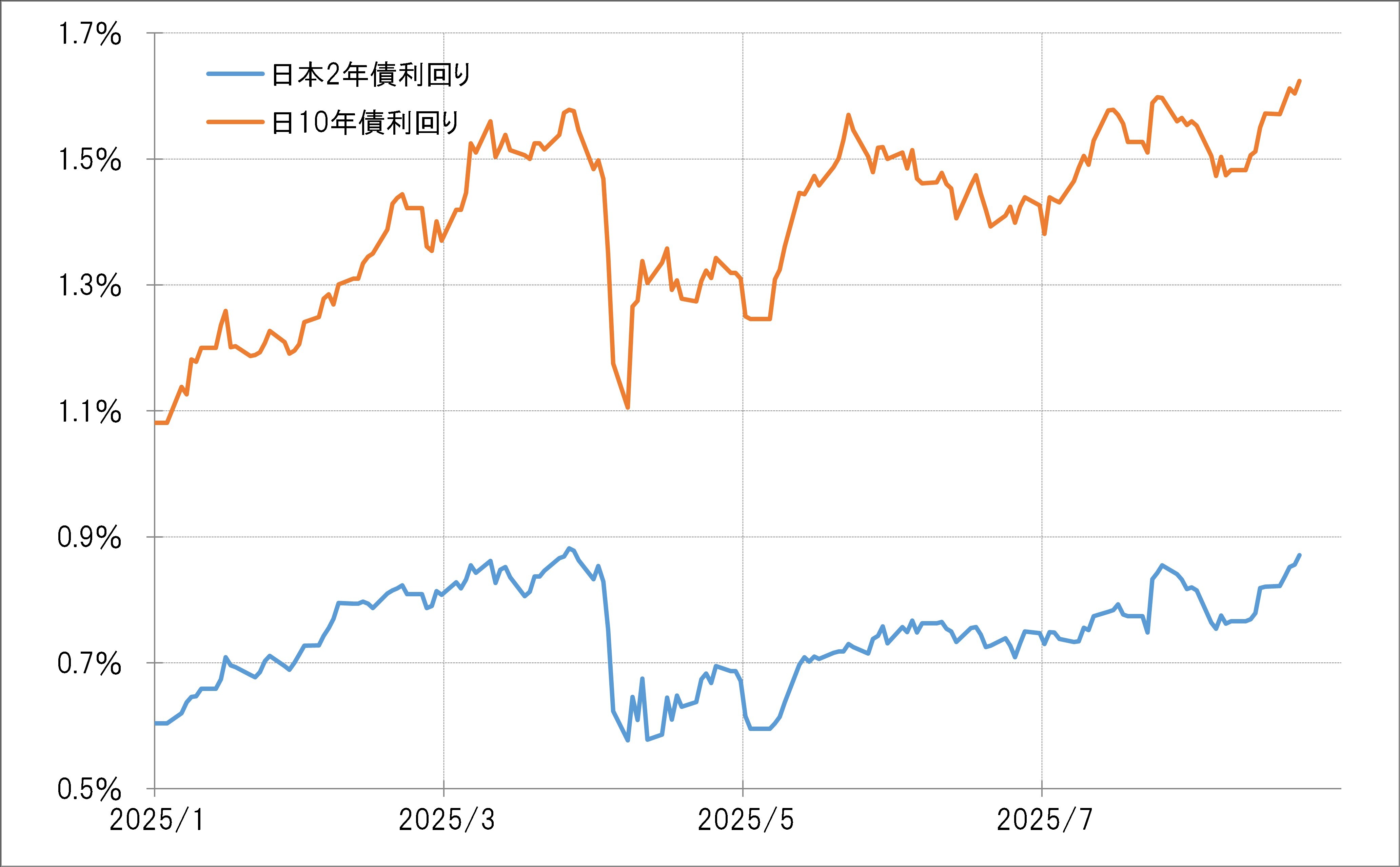 今回のパウエル「ジャクソンホール発言」を受けて、9月FOMCでの利下げの可能性が高まったことにより米金利の上昇は限られそうです。一方、日本の金利は最近にかけて上昇傾向が続いており、日銀の早期追加利上げを先取りするような動きになっています(図表3参照)。