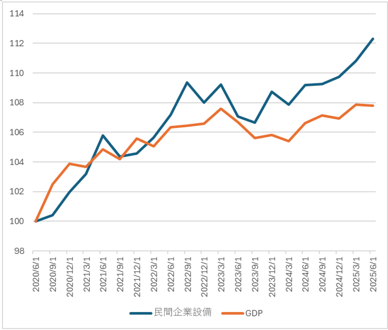 足元では米関税政策などで投資計画を見直す企業の動きが出ていることもあって、先行きを慎重にみる声もあるが、企業の設備投資意欲は潜在的に強いことが日銀短観などでも示されている。背景にはインフレに転換したこと、人手不足への対応、DXやAI投資のニーズ加速など複数の要因がある。これまで日本経済が成長できなかったのは、ひとえに企業の設備投資が不足していたからだ。マクロ的に見ても資本不足は明白で、これが低成長のボトルネックになってきた。