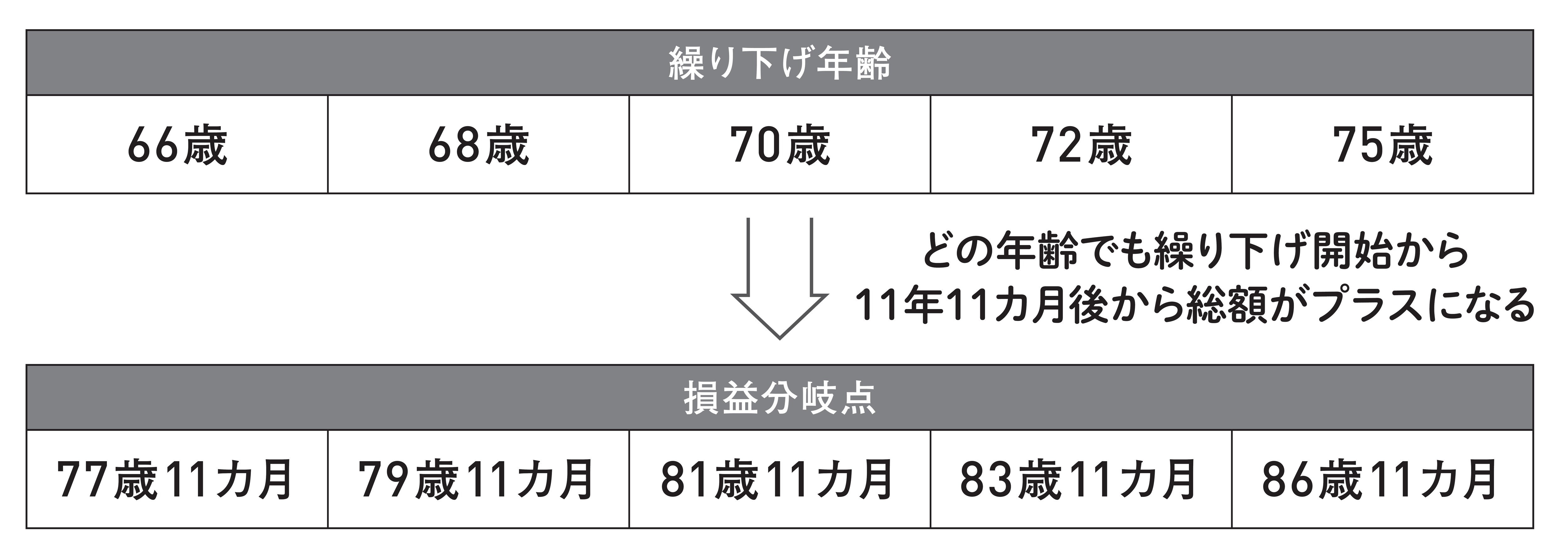■繰り下げ受給の損益分岐点は受給開始から11年11ヵ月後