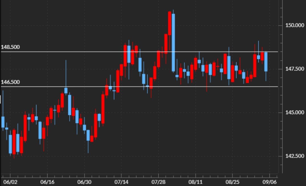 ・雇用統計の結果を受けて、9月に0.5%の利下げや10月以降の連続利下げの可能性も浮上。ただ米ドル/円はこのところ米ドル安要因に反応が鈍い状況が続いている。