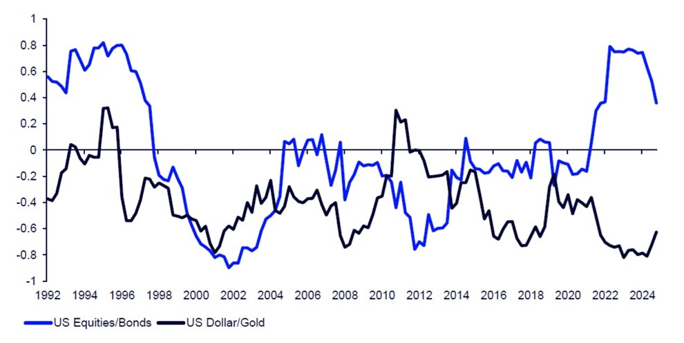 ・脱ドル化……各国が国際貿易、金融取引、外貨準備における米ドル依存を減らすプロセスで、多くの場合、その背景には地政学的動機、制裁リスク、自国通貨の主権確保の取り組みがあります。